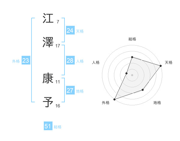 江澤 康予さんの天格は24画の5点!