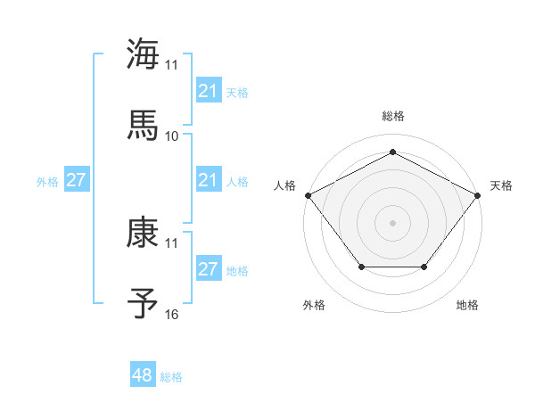 海馬 康予さんの天格は21画の5点!