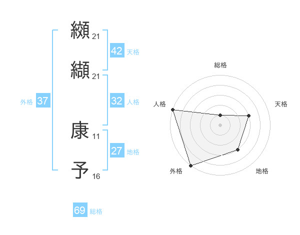 纐纈 康予さんを姓名の画数から五運を鑑定