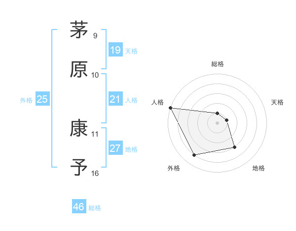 茅原 康予さんの人格は21画の5点!