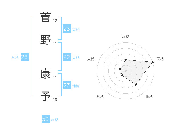 菅野 康予さんの天格は23画の5点!