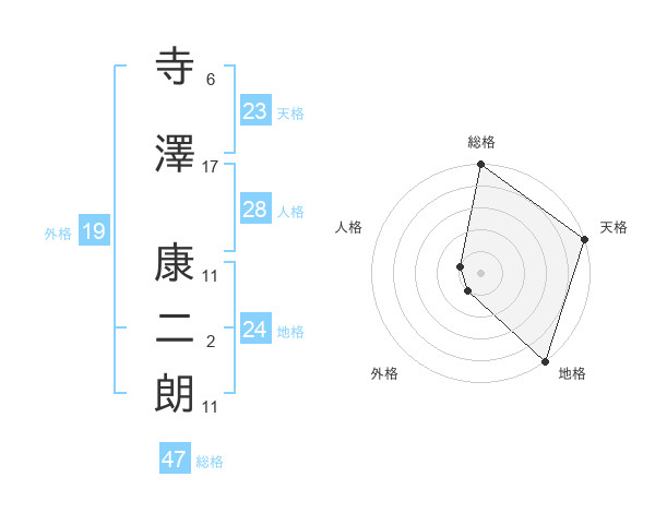 寺澤 康二朗さんを姓名の画数から五運を鑑定