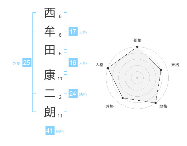 西牟田 康二朗さんを姓名の画数から五運を鑑定