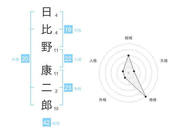 日比野 康二郎さんを姓名の画数から五運を鑑定