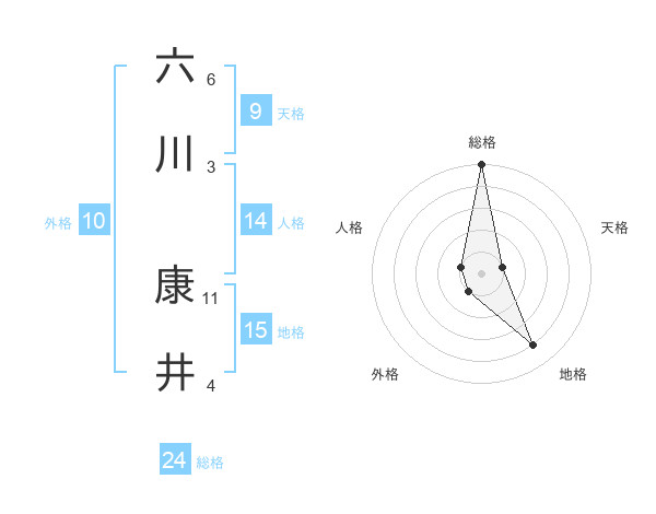 六川 康井さんの総格は24画の5点!