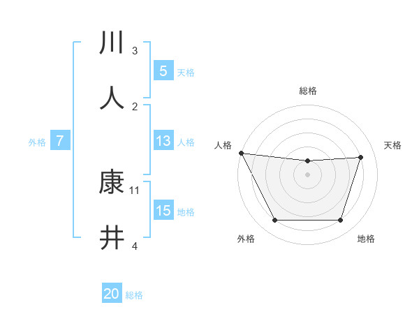 川人 康井さんの総格は20画の1点!