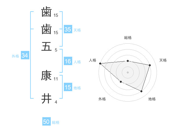 歯歯五 康井さんを姓名の画数から五運を鑑定
