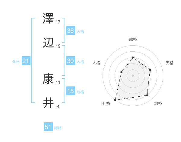 澤辺 康井さんを姓名の画数から五運を鑑定