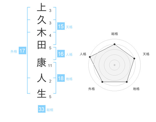 上久木田 康人生さんを姓名の画数から五運を鑑定