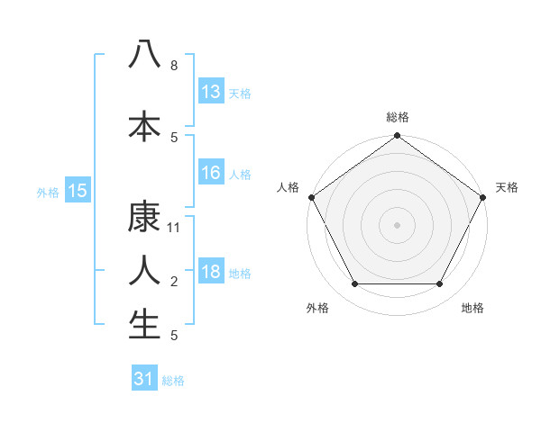 八本 康人生さんの天格は13画の5点!