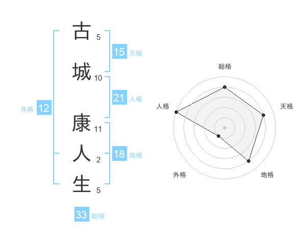 古城 康人生さんの天格は15画の4点!