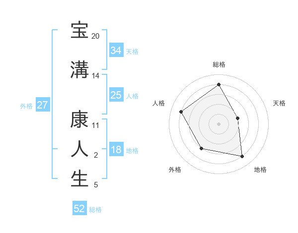 宝溝 康人生さんを姓名の画数から五運を鑑定