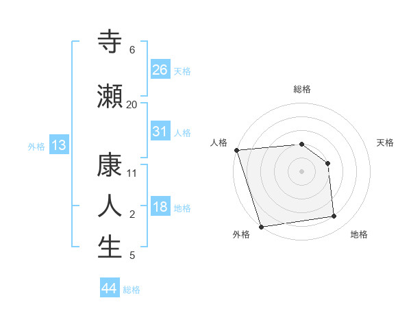 寺瀬 康人生さんの外格は13画の5点!