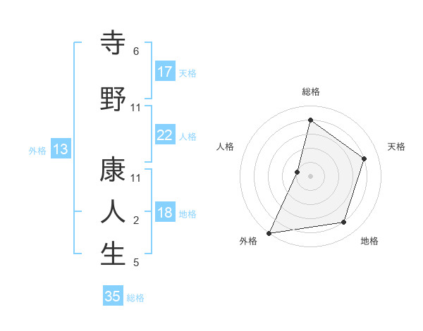 寺野 康人生さんを姓名の画数から五運を鑑定