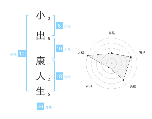小出 康人生さんの総格は26画の2点!