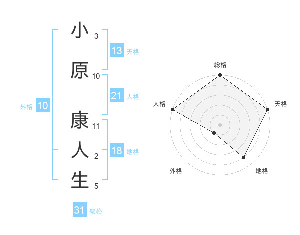 小原 康人生さんの総格は31画の5点