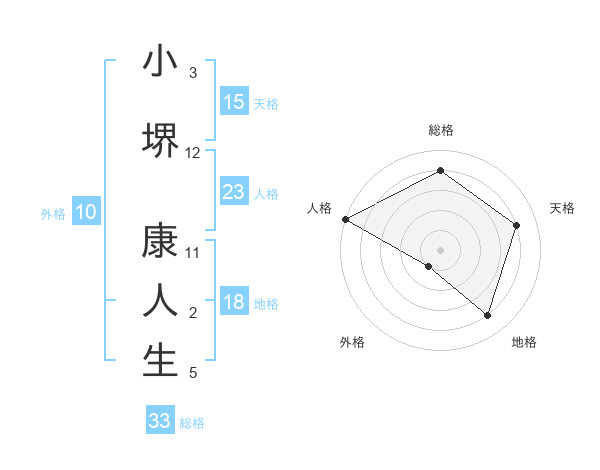 小堺 康人生さんの天格は15画の4点!