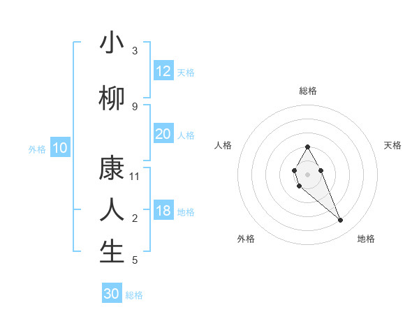 小柳 康人生さんを姓名の画数から五運を鑑定