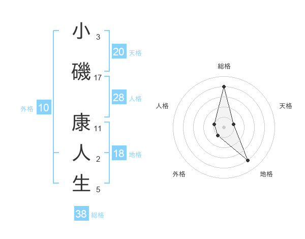 小磯 康人生さんを姓名の画数から五運を鑑定