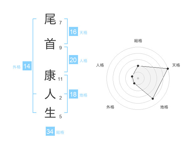 尾首 康人生さんを姓名の画数から五運を鑑定