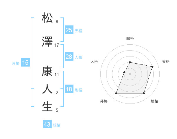 松澤 康人生さんを姓名の画数から五運を鑑定