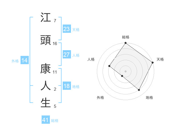 江頭 康人生さんを姓名の画数から五運を鑑定