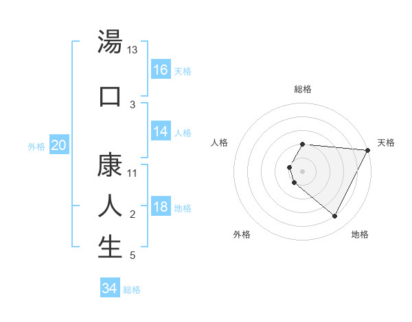 湯口 康人生さんの天格は16画の5点!