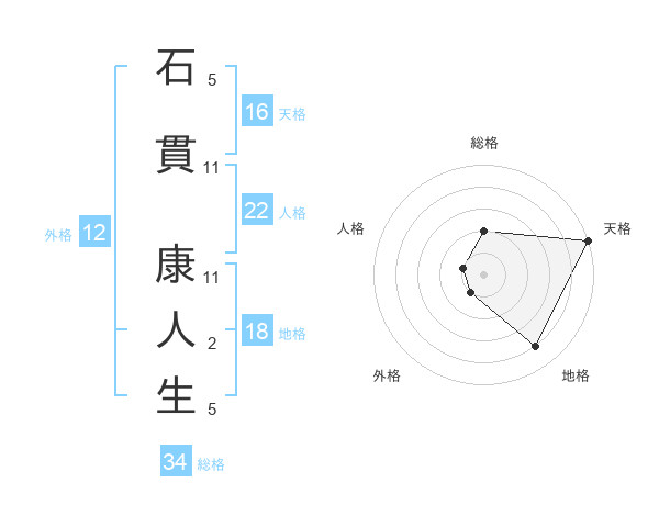 石貫 康人生さんを姓名の画数から五運を鑑定