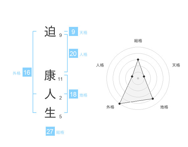 迫 康人生さんの総格は27画の3点!