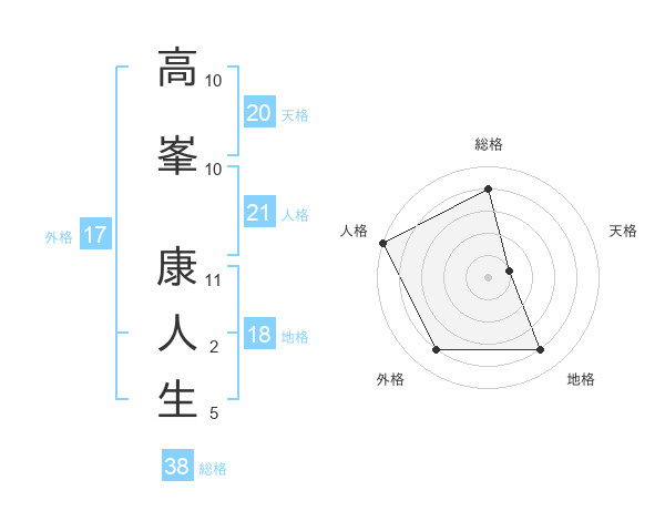 高峯 康人生さんを姓名の画数から五運を鑑定