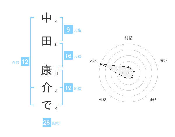 中田 康介でさんの総格は28画の1点