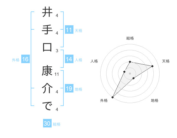 井手口 康介でさんの総格は30画の2点