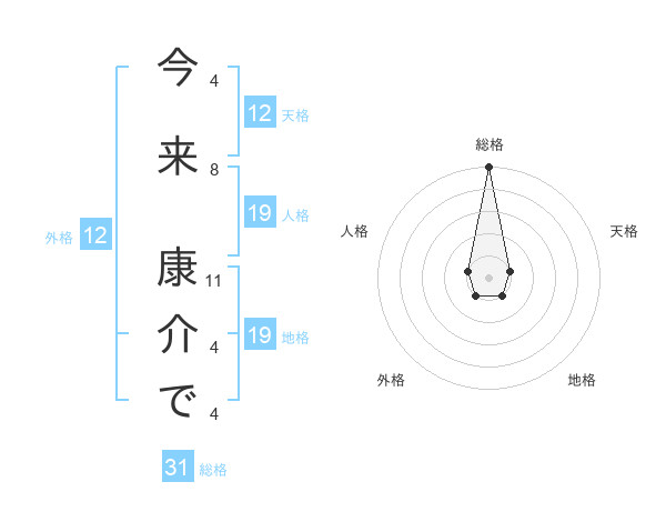 今来 康介でさんの外格は12画の1点!