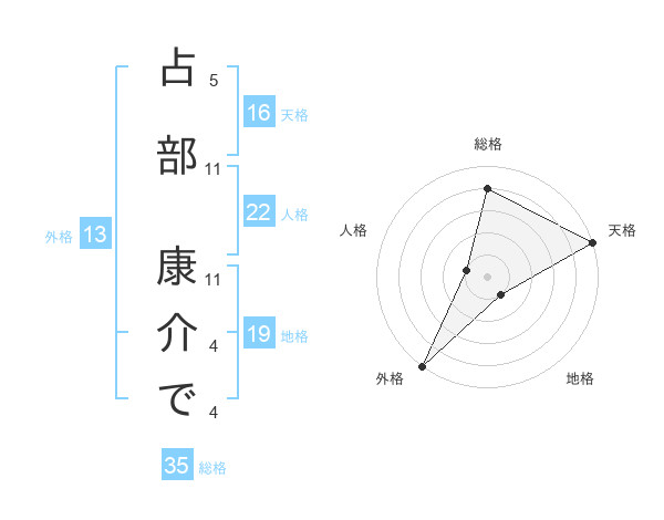 占部 康介でさんの外格は13画の5点!