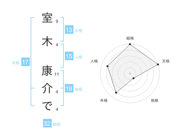 室木 康介でさんの天格は13画の5点!