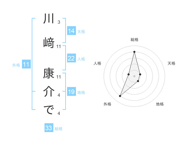 川﨑 康介でさんを姓名の画数から五運を鑑定