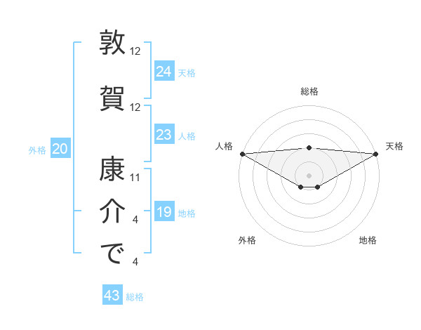 敦賀 康介でさんの天格は24画の5点!