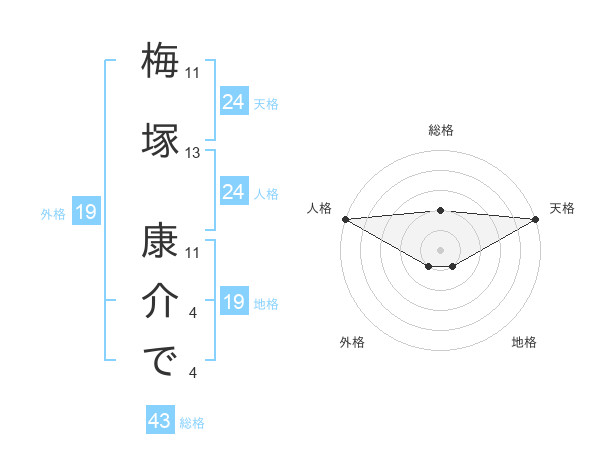 梅塚 康介でさんの天格は24画の5点!