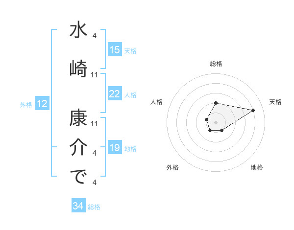 水崎 康介でさんの天格は15画の4点!