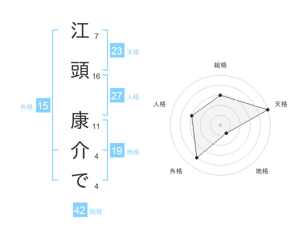 江頭 康介でさんを姓名の画数から五運を鑑定
