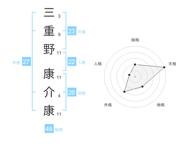 三重野 康介康さんを姓名の画数から五運を鑑定