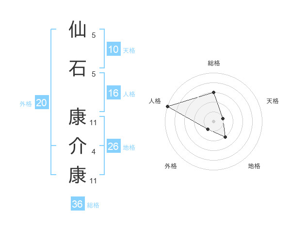 仙石 康介康さんを姓名の画数から五運を鑑定