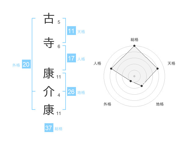 古寺 康介康さんの総格は37画の5点!