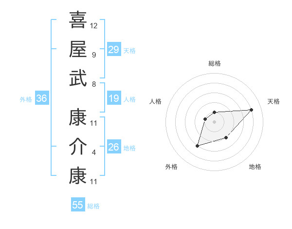 喜屋武 康介康さんを姓名の画数から五運を鑑定