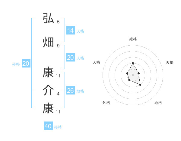 弘畑 康介康さんを姓名の画数から五運を鑑定