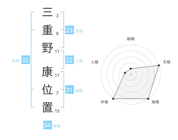 三重野 康位置さんの天格は23画の5点!
