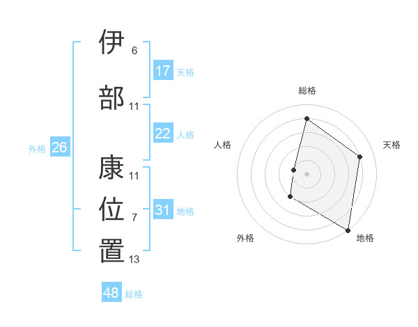 伊部 康位置さんを姓名の画数から五運を鑑定