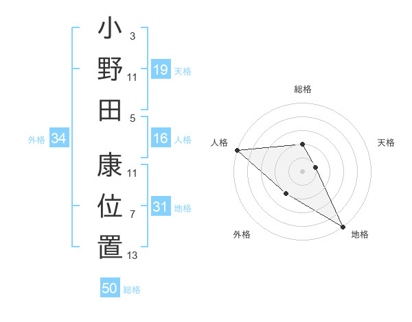 小野田 康位置さんを姓名の画数から五運を鑑定