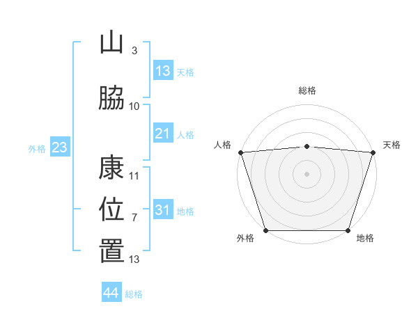 山脇 康位置さんを姓名の画数から五運を鑑定
