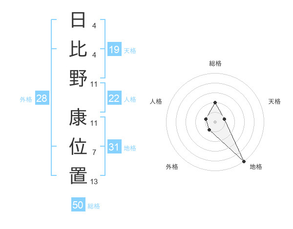 日比野 康位置さんを姓名の画数から五運を鑑定